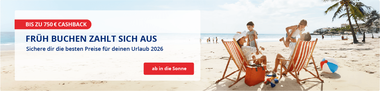 Gut geplant ist halb entspannt: Damit aus deinem Urlaub ein Traumurlaub wird, ist eine gute Planung wichtig. Wir möchten, dass du einen entspannten, sorgenfreien Urlaub genießen kannst, an den du dich gern erinnerst. Deswegen findest du auf ab in den urlaub auch zahlreiche Zusatzangebote, die dir deine Reiseplanung erleichtert. Profitiere beispielsweise von unseren Kundenmeinungen und den vielen Bewertungen für Hotels und Ferienwohnungen. Finde so ganz einfach die Unterkunft, die perfekt auf deine Bedürfnisse zugeschnitten ist. So wird dein Urlaub mit Hund kein Problem. Du möchtest dein Reiseziel ganz individuell mit dem Mietwagen erkunden? Auch dafür findest du bei uns das passende Angebot. Im Mietwagen Preisvergleich warten auf dich tolle Angebote für Mietautos auf Mallorca, Gran Canaria, in London, in Griechenland und in Destinationen auf der ganzen Welt. Und weil Sparen so viel Spaß macht, findest du in unserer Deals-Kategorie auch noch ganz besondere Schnäppchen für Hotels, Last Minute und andere Reisen. Ein unvergesslicher und günstiger Urlaub ist nur wenige Klicks entfernt. Viel Spaß beim Stöbern!